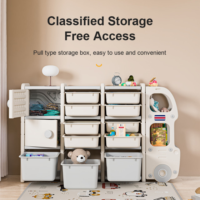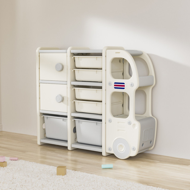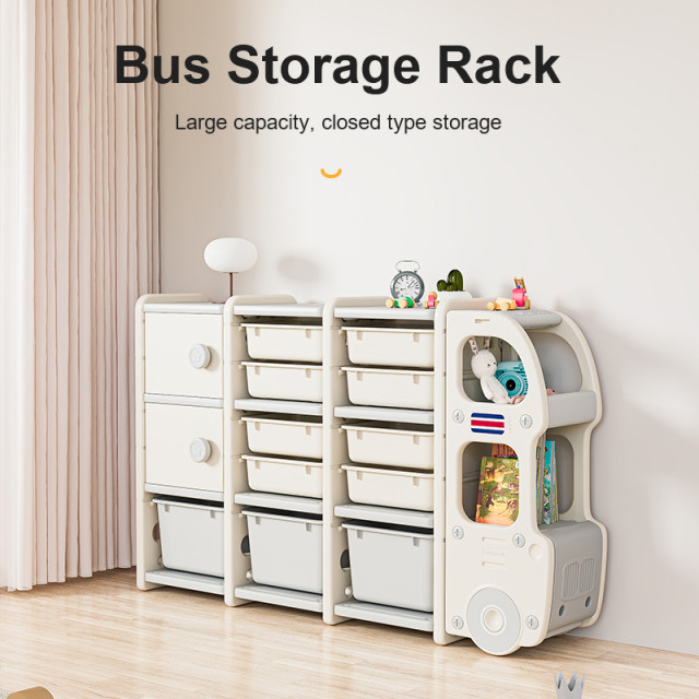 Description:kids storage shelf, bus storage rack